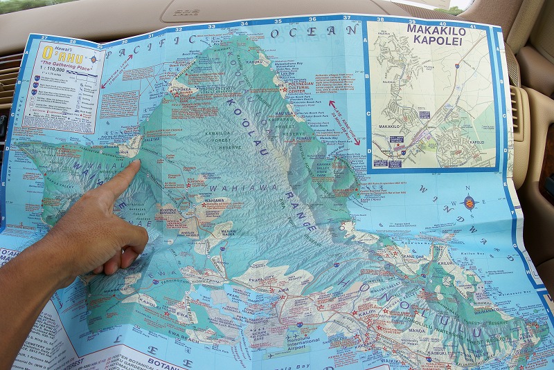本日の目的地はここ↓。今回の旅でパイプラインはどうしても見ておきたかったので、朝からノースショア巡りはうれしい。