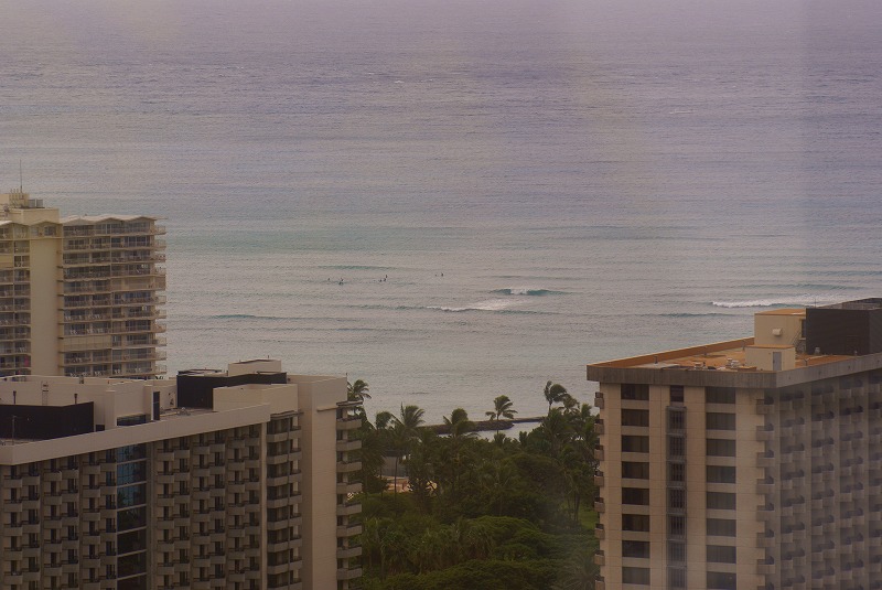 屋上から波をチェックしたら依然としてトレードウインドが強く、スウェルもない。