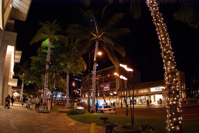夜のワイキキ繁華街へ行くと、