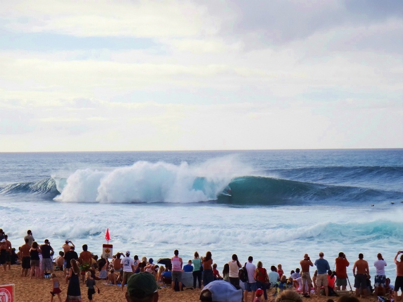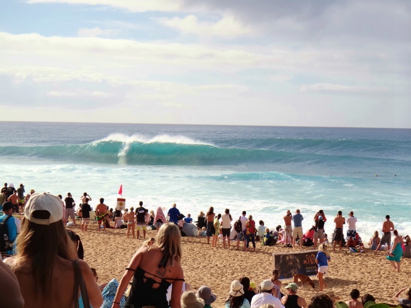 こちらもちょうどパイプラインマスターズ初日ですごい観客動員。