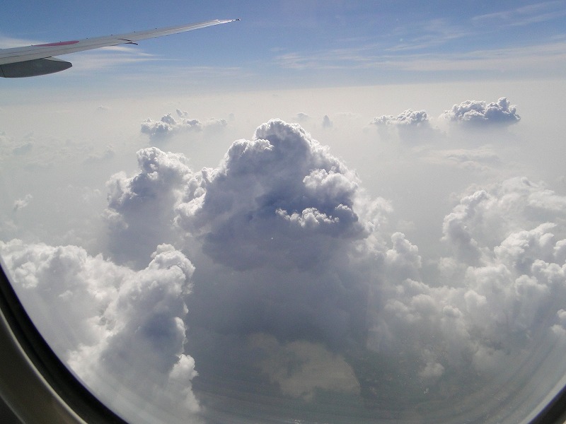 飛行機を乗り継ぎ、