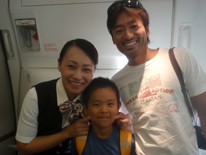 そろそろ離陸します。よくよく考えたら3姉妹とコウジは同級生。