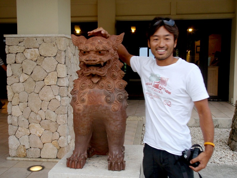 念願のシーサーとカシャリ。
