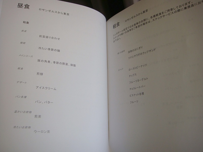 わざわざ機内食メニューまで配布され、