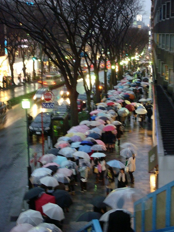原宿に移動すると外は雨が降っていて、傘の輪が広がっていた。