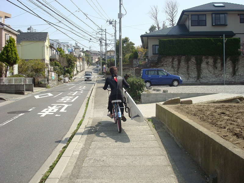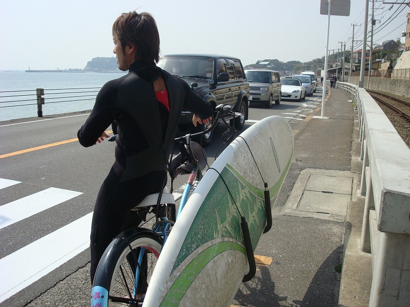 波情報をチェックしたら腹前後らしいので、早速着替えて今度は自転車で海を目指す。