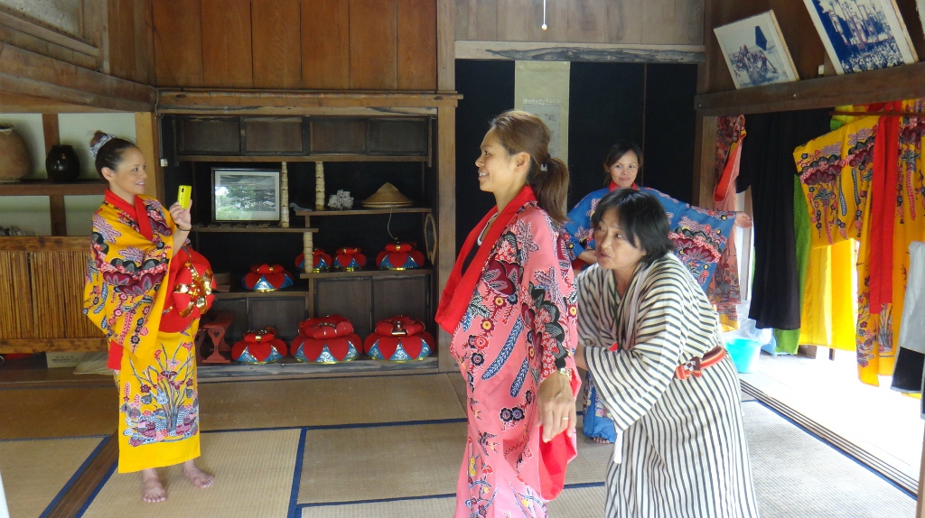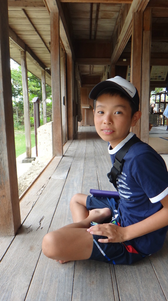 琉球衣装体験をする甥っ子と、
