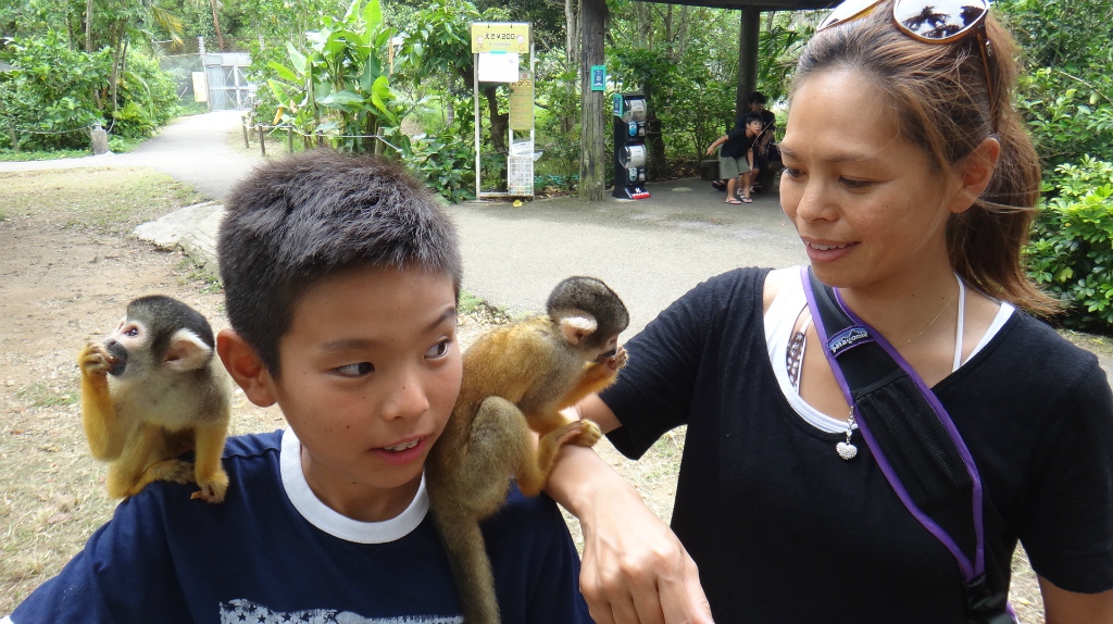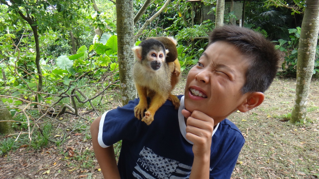 リスザル園では彼らのかわいさに大興奮。