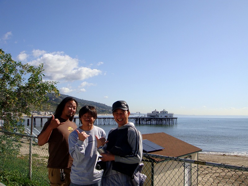 渋滞に巻き込まれることなく10時前に到着。Koichiのマリブデビューなので、ピアをバックに記念撮影。