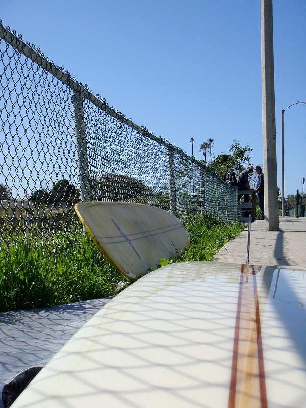 先日の雨でインサイドの水は濁っているが、無風、最大セット腰波のマリブらしいマシーンブレイク。