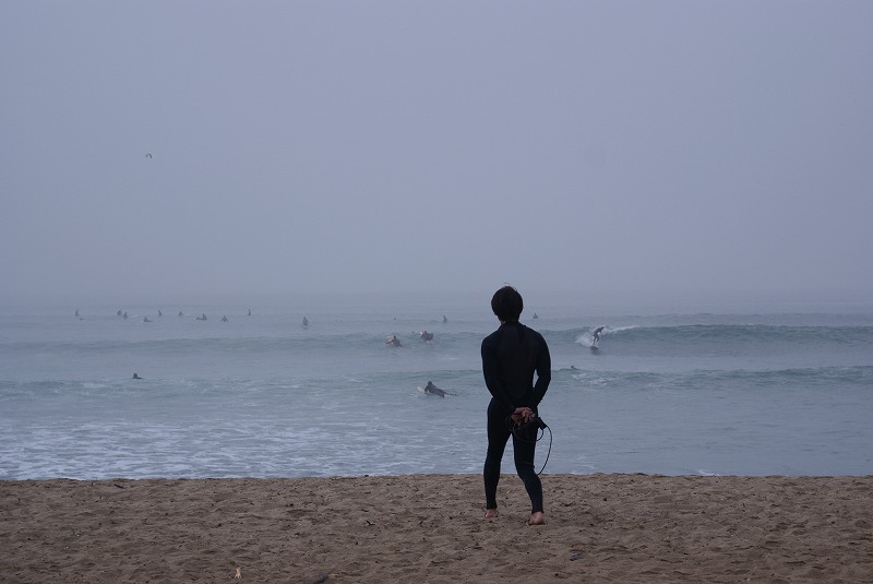 面は荒れてきたが依然として波数は多く、頭くらいのセットが4〜5本押し寄せてくる。Johnはすでにラインナップにいます。(笑)