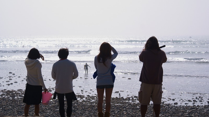 と考えているかどうかは疑問だが、海に入る前はいつもこうして入念なストレッチと波のチェックを欠かさないKanta。サーファーにとって大切な瞑想タイムです。