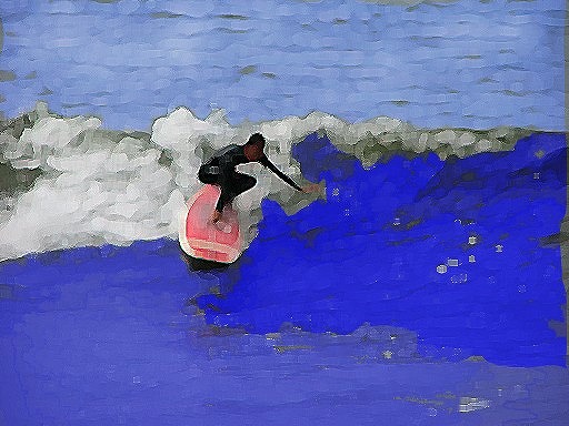 大セットを捕まえたJohnはゆるやかに加速しながらフェイスを下り、その様子をちょうどボトム側から見ていたらアングル的にもイメージ的にもこんな感じでした。↓