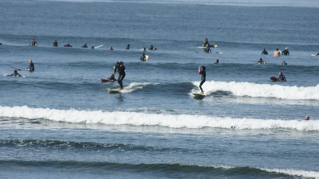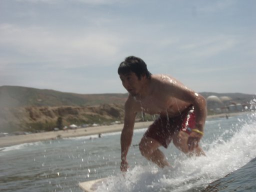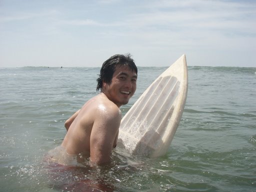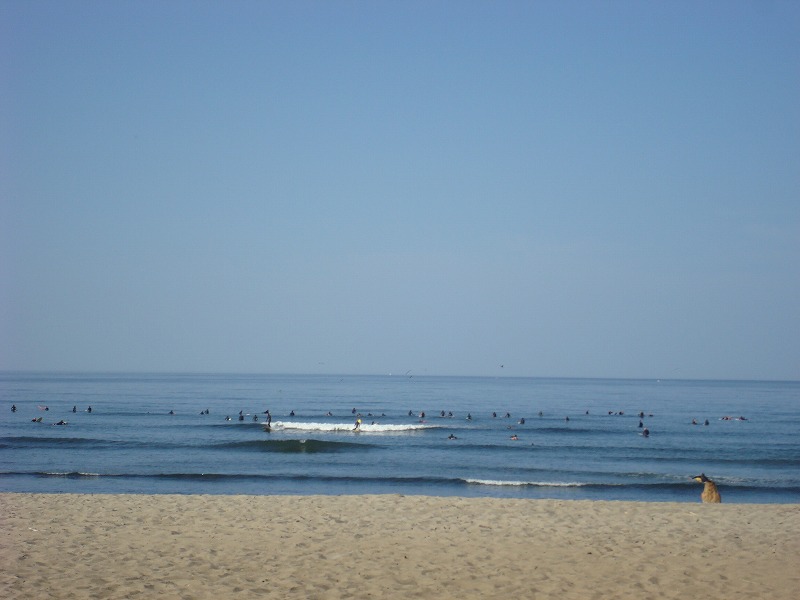 セット波でせいぜい腰波。間隔も長く、波数も少ないので仲間と波のシェアリング。Johnと俺、