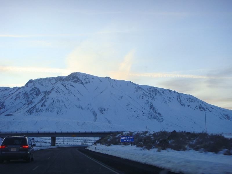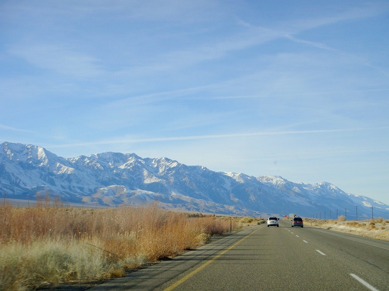 395号に入ると雪をまとったシエラネバダ山脈南端が目の前に広がり、その美しさに感動。
