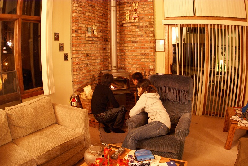 山小屋の暖炉でまったり。