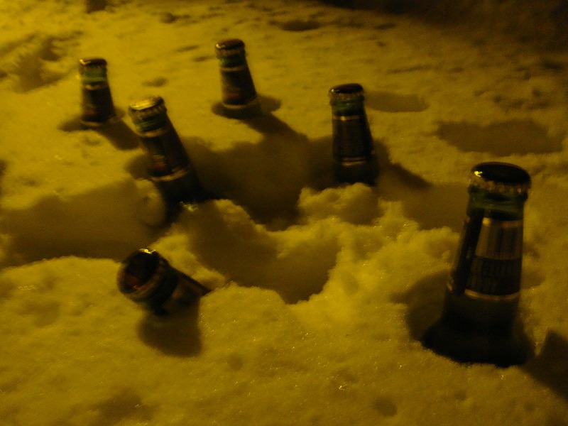 すぐに自然の冷凍庫でビールを冷やし、