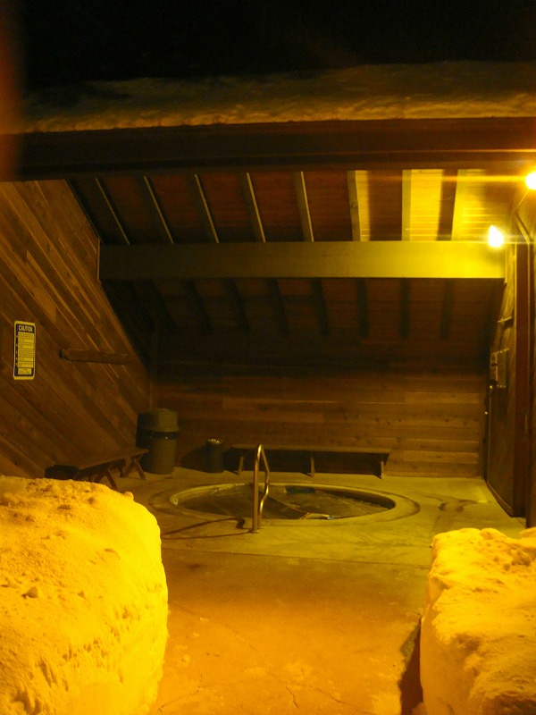屋外ジャグジーで長旅の疲れをほぐし、