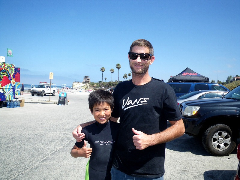 朝のリーフでいきなりジョエル大先生との初対面にサムズアップな甥っ子君。