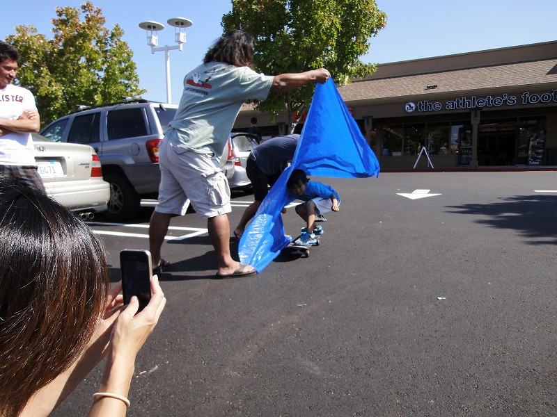 そしてランチ後は、サイラス発案のタープ遊びでバレルセクションを疑似体験中!