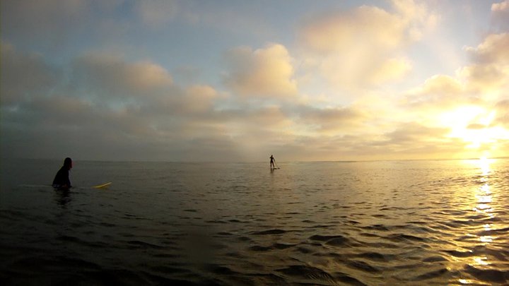 夕暮れのラインナップではSue(写真中央)がTedの板で果敢にもSUPに初挑戦し、いつまでも漕ぎ回っていたのは明らかに俺よりバランス感覚がいい証拠ですね。