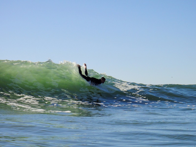 昨夜の雹混じりの雨の直後だがそこはにこにことパドルアウトし、多方向からの頭サイズのうねりに修行を強いられました。(笑)