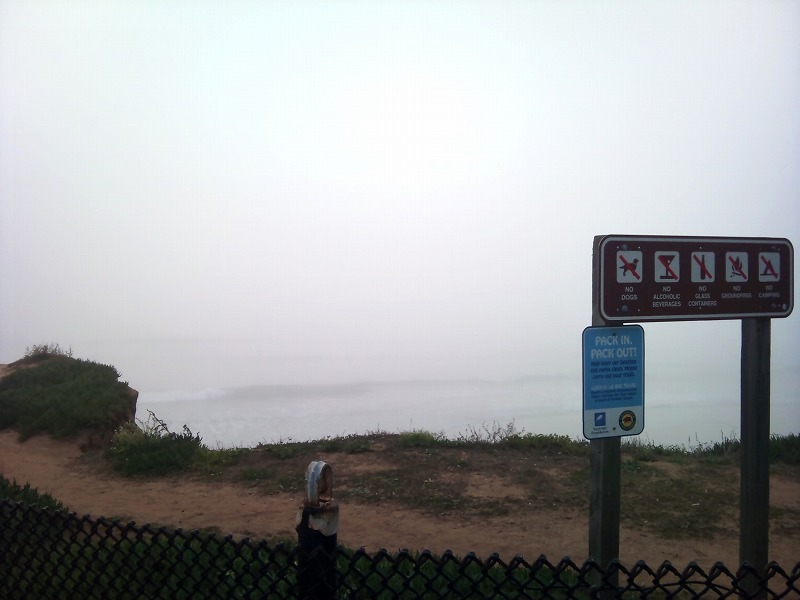 午後の海沿いはすごい濃霧。波数は少ないけどグラッシーな膝波ピークでした。