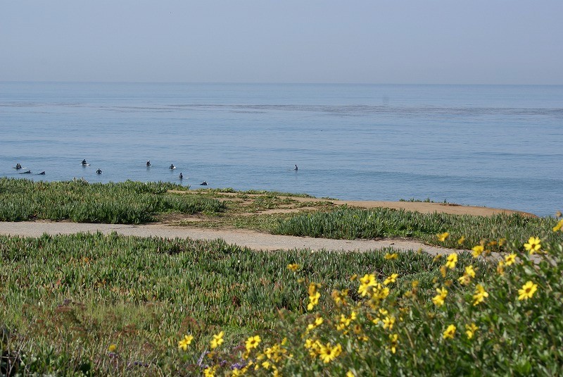 カールスバッドもエントリー付近は大量の玉石で覆い尽くされ、スーパーハイタイドなので水に飛び込むタイミングを計るのに一苦労。