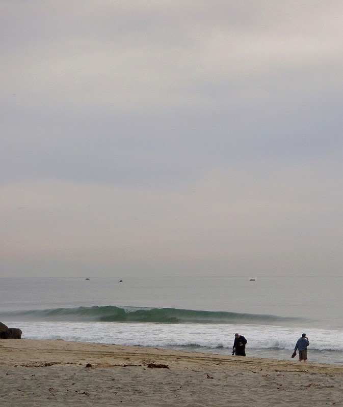 まるで嵐の前の静けさで、ジェティー寄りの砂州ではスーパーグラスオフした膝〜腰波がブレイク。