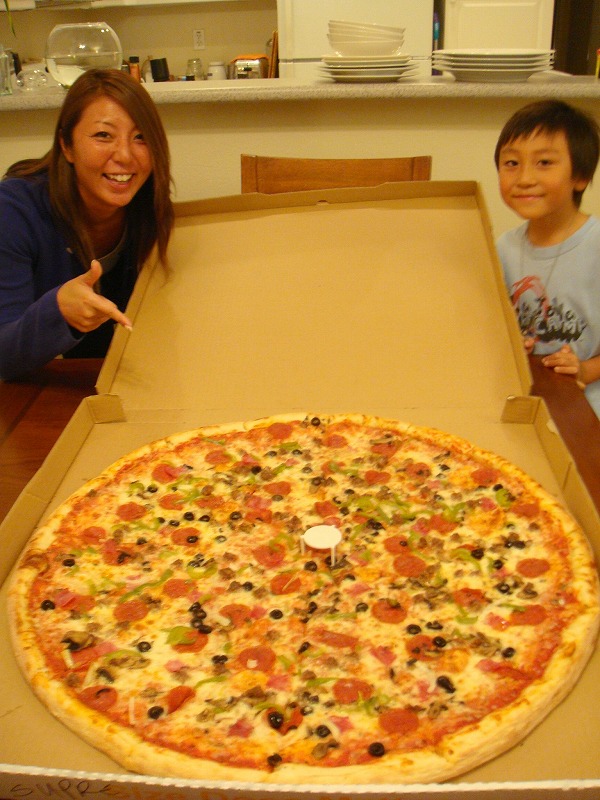 ユウコもSD入りしていて、夜食に我が家で28インチ(約71センチ!)の特大ピザをオーダー。