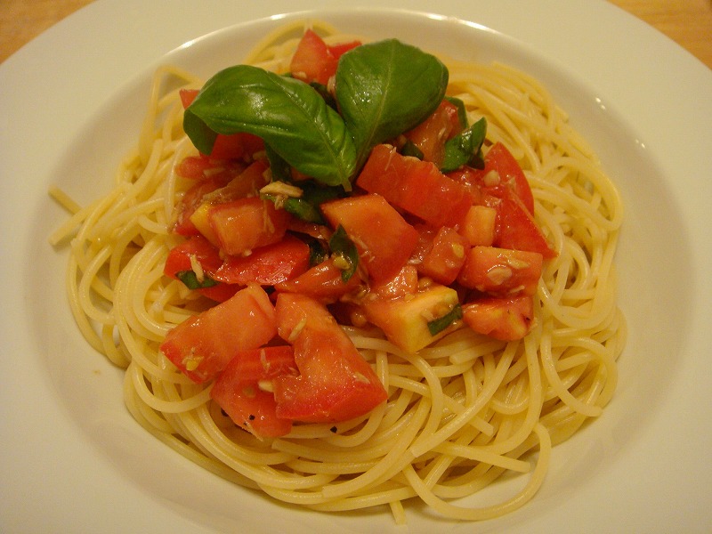 身も心もすっかりリセットされて家に帰ると、今度は夏らしくトマトとバジルの冷やしパスタが登場。