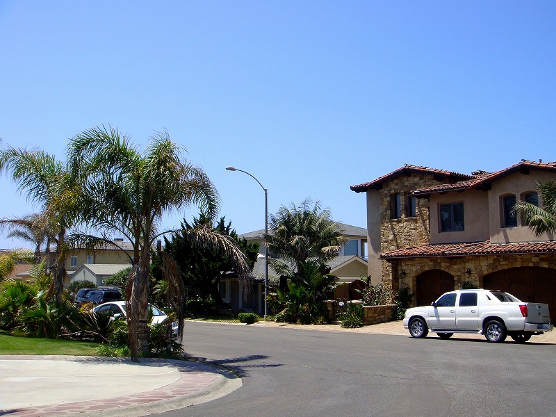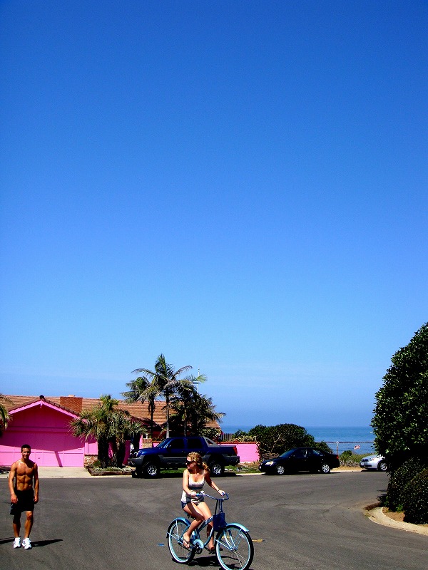 それに隣接するのは鮮烈なピンク外壁の平屋で、HOA(Home Owners' Association)縛りがないとこんなこともできてしまうという一例です。