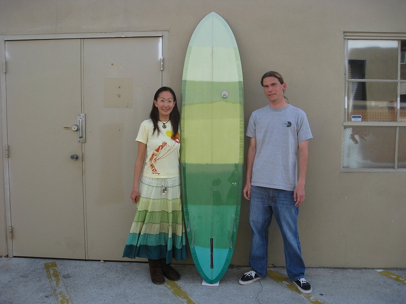 ピークに漕ぎ出るとRiikoがエッグシェイプの5フィンボンザーと見慣れぬ板に乗っていて、聞けばマイケルに削ってもらったというきれいなニューボード。
