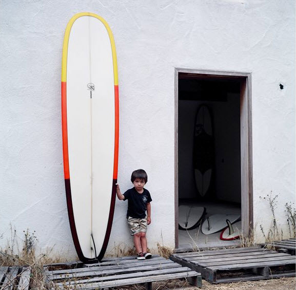 SUPにバットマンテイルノーズライダーにフィッシュと、どんな波にも対応できるスティックが積まれていたジョエルのサーフヴァン。