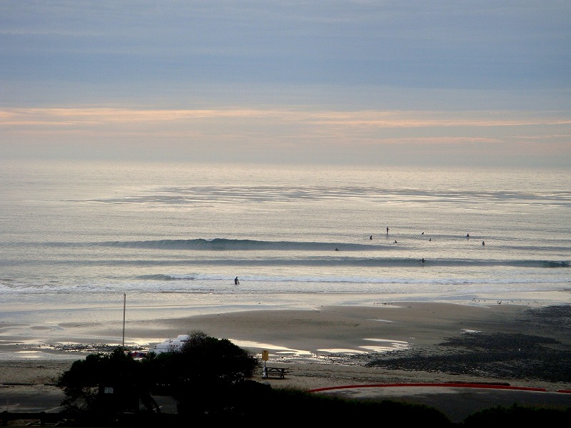 今日は南うねりが届くというのでいつものように泳ぎ出ると、オンショアだった風が午後にぴたりと止み、波もまとまり始めて最高の胸波が形成された。