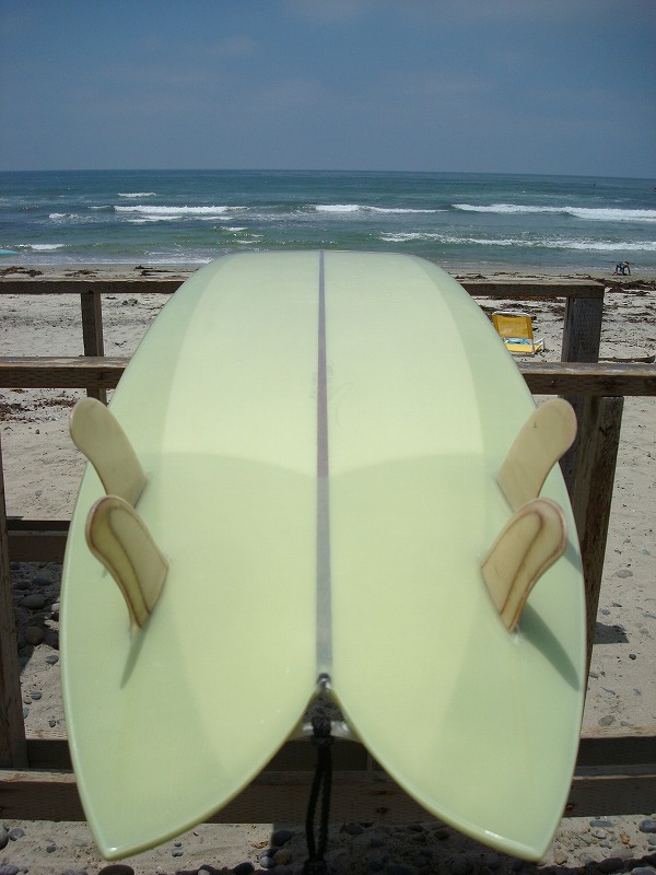 両面と片面フォイルのラリー・ゲファートのクアッドフィンセットアップ。これは10フィートのCCグライダーで、Johnの渋〜いニューボードです。