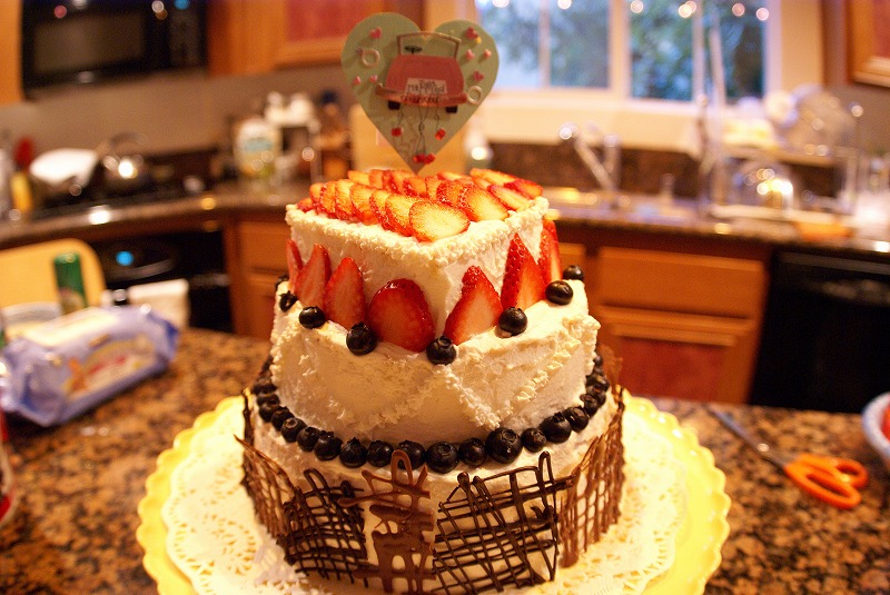 これはNobutatsu&Rie入籍祝いにと、Asakoが作ったウエディングケーキ。