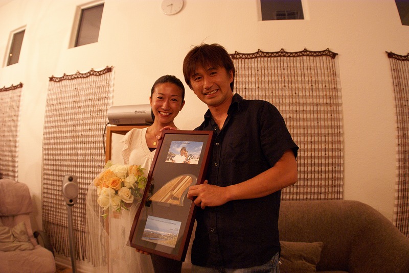 新婚さんのお2人には、サンディエゴ記念プレートと波乗りウェルカムキットを贈呈しました。