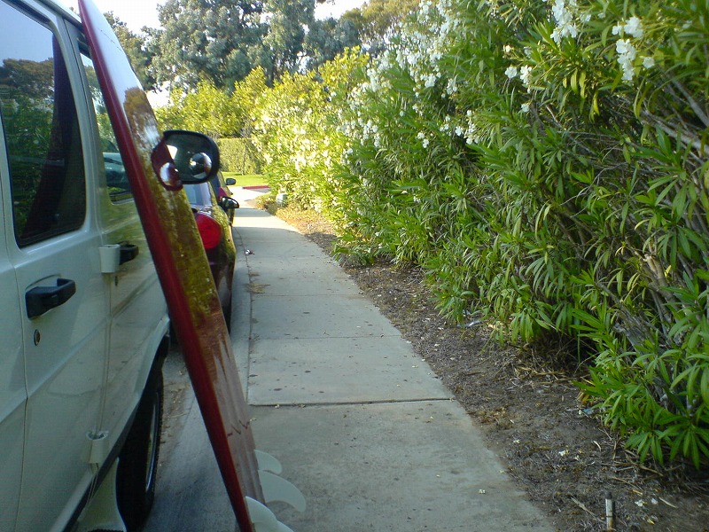 短い板で波のポケットをキープする練習になるし、このきつい坂道の往路も下半身強化の陸上トレーニングには最適だ。