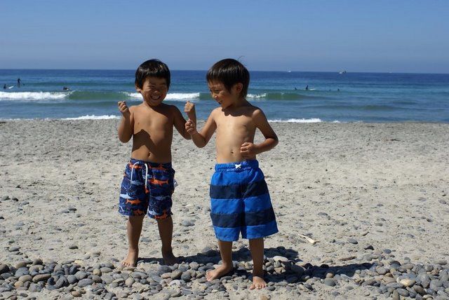 親が波乗り中でも気にしないJoe&Ty。
