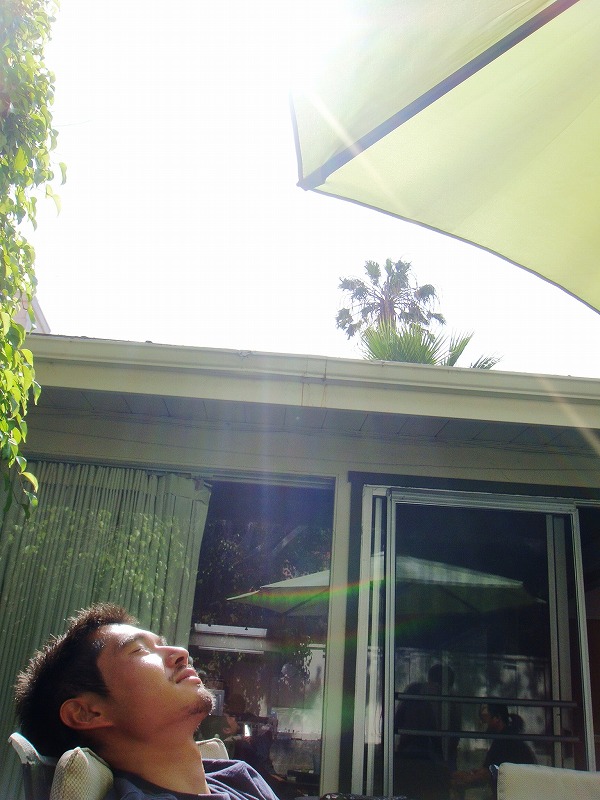 霧雨と南風でサーフするタイミングを見計らっているうちに、結局半日をこうしてぐうたらと過ごしちゃいました。でもこれはこれで気持ちよく、贅沢で幸な時間なんですよ。Thanks John!
