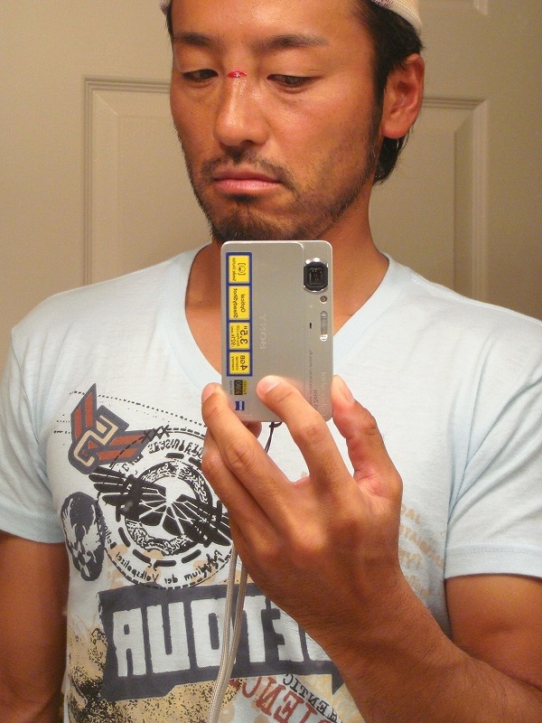 近くで心配してくれたケンタに聞いたら折れていないことが確認できたので、とりあえず止血作業を海水の塩分でしのいでそのまま波乗りに興じ、上がってからAkezoに消毒薬をいただきました。