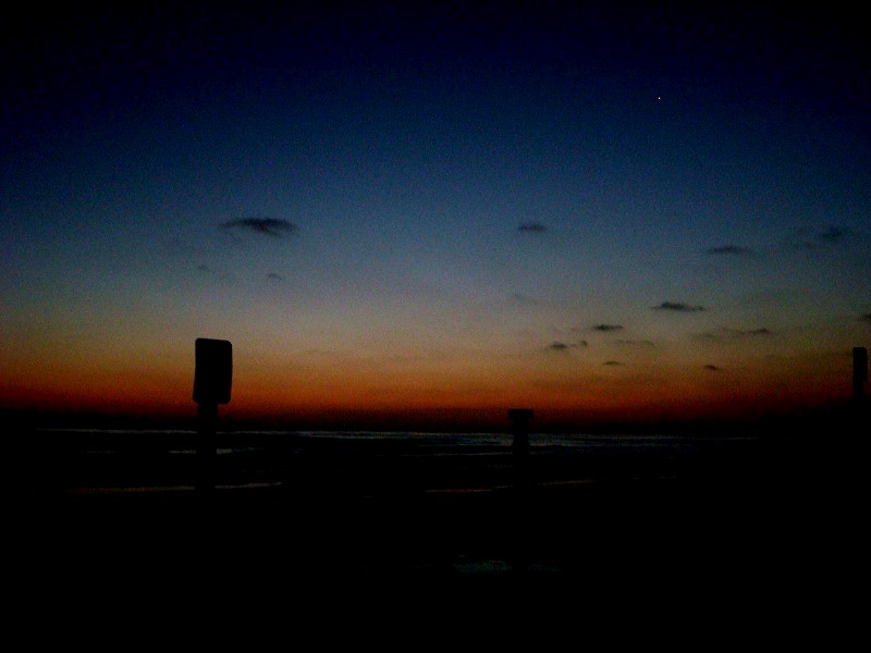 腰〜胸サイズの波が続いていて、美しい夕焼けのシルエット。